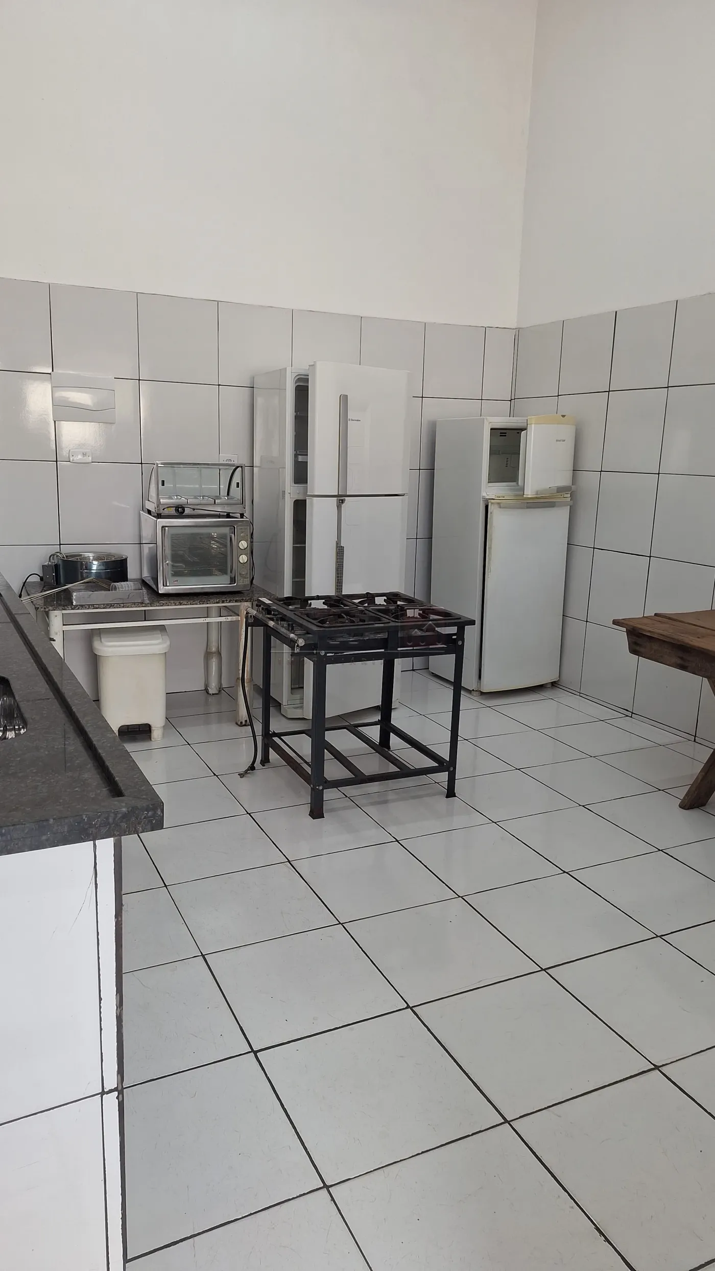 Ponto comercial dispõe de ampla área para comércio e 01 WC, cozinha industrial.