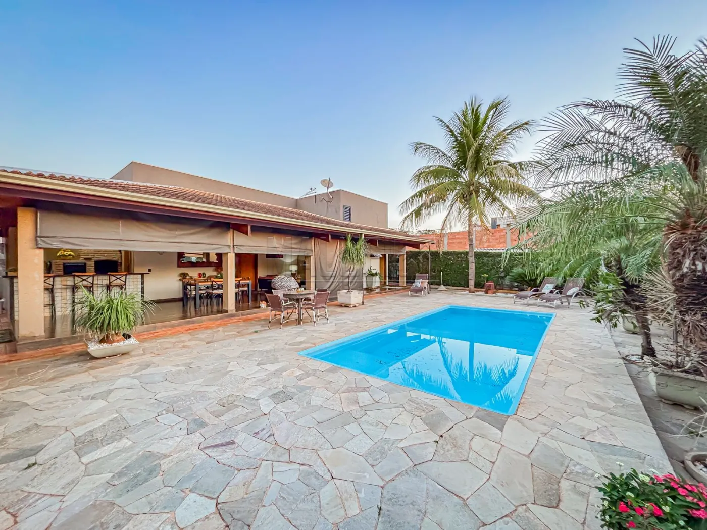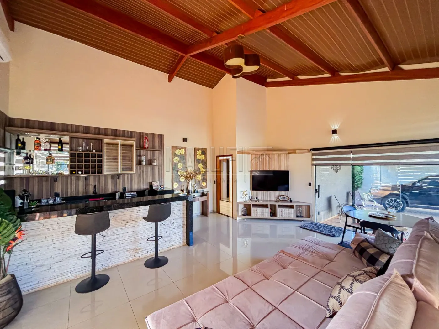 Maravilhoso Imóvel residencial de Alto padrão localizado em condomínio fechado próximo as principais atrações turísticas da cidade, dispondo de: 03 quartos - sendo 01 suíte, wc social interno e externo, ampla sala de tv com pé direito alto integrada com a cozinha, área de lazer com piscina, ampla área gourmet, varanda, cozinha externa com armários planejados, quarto nos fundos, despensa com armários, área de serviço coberta, canil, energia fotovoltaica, portão eletrônico e garagem coberta para 02 carros.