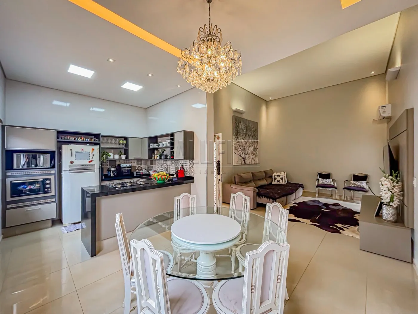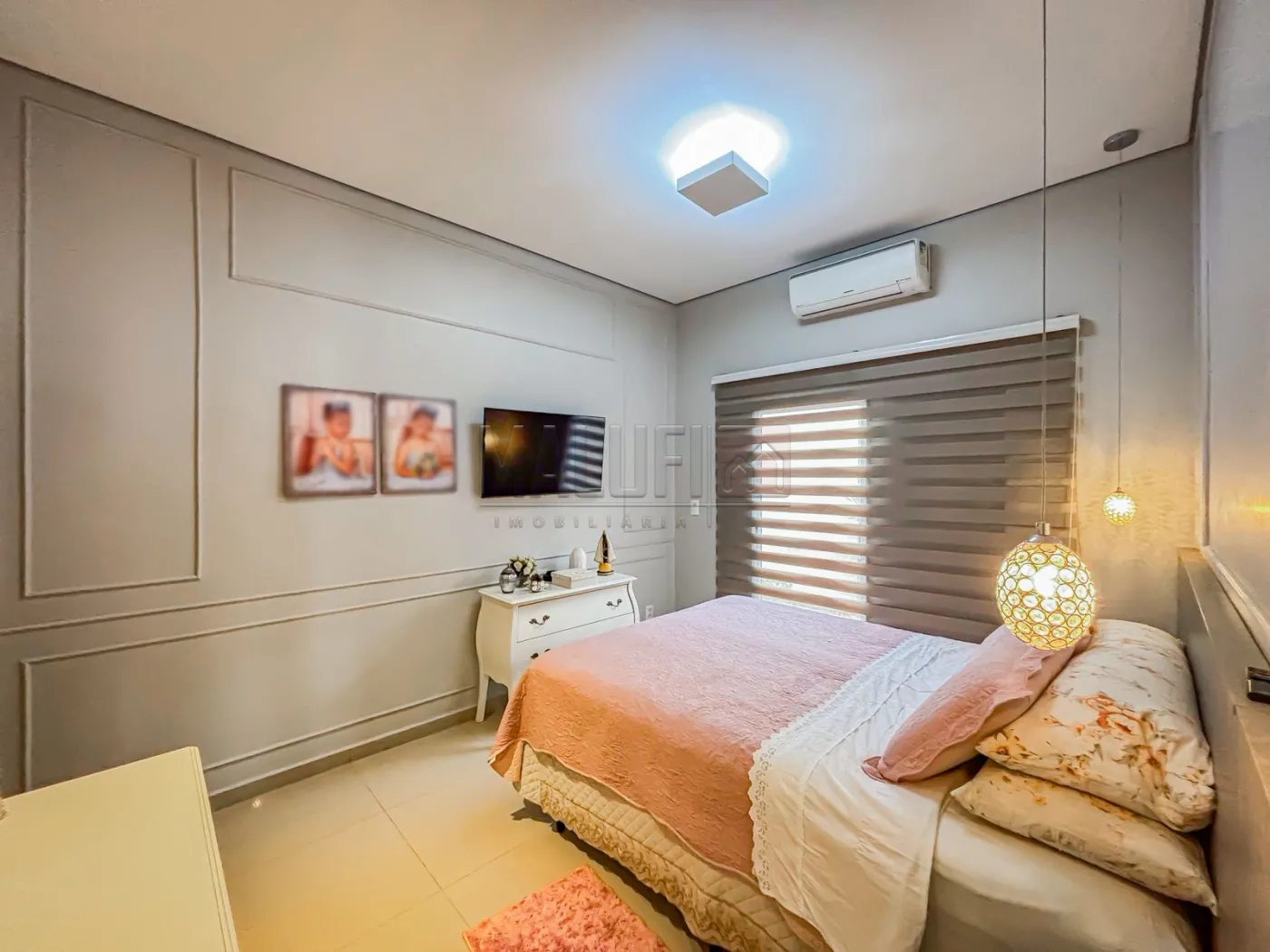Maravilhoso Imóvel residencial de Alto padrão, com excelente localização em bairro privilegiado e muito bem requisitado, próximo a região central da cidade; Dispondo de: 03 quartos - sendo 02 c/ armários planejados e 01 deles suíte, ampla sala de tv com pé direito alto integrada com sala de jantar e cozinha c/ armários, jardim de inverno, 03 ar-condicionado - sendo 01 na sala de 02 nos quartos, ampla área de lazer com churrasqueira, lavabo, área de serviço coberta, portão eletrônico, sistema de monitoramento, energia fotovoltaica e garagem coberta para 02 carros.