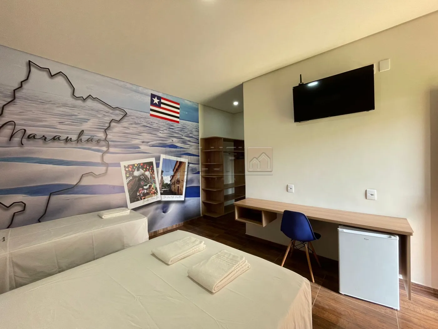- 2 Quartos Quíntuplos, 26m², equipados com 1 cama casal, 1 cama solteiro, 1 bicama, linha hotel Orthobom, frigobar, ar condicionado LG Inverter Wifi, Smart TV 40`, mesa e cadeira de trabalho, roupas de cama e banho linha profissional Teka, banheiro com box, ducha pressurizada, espelhos de corpo e rosto.
