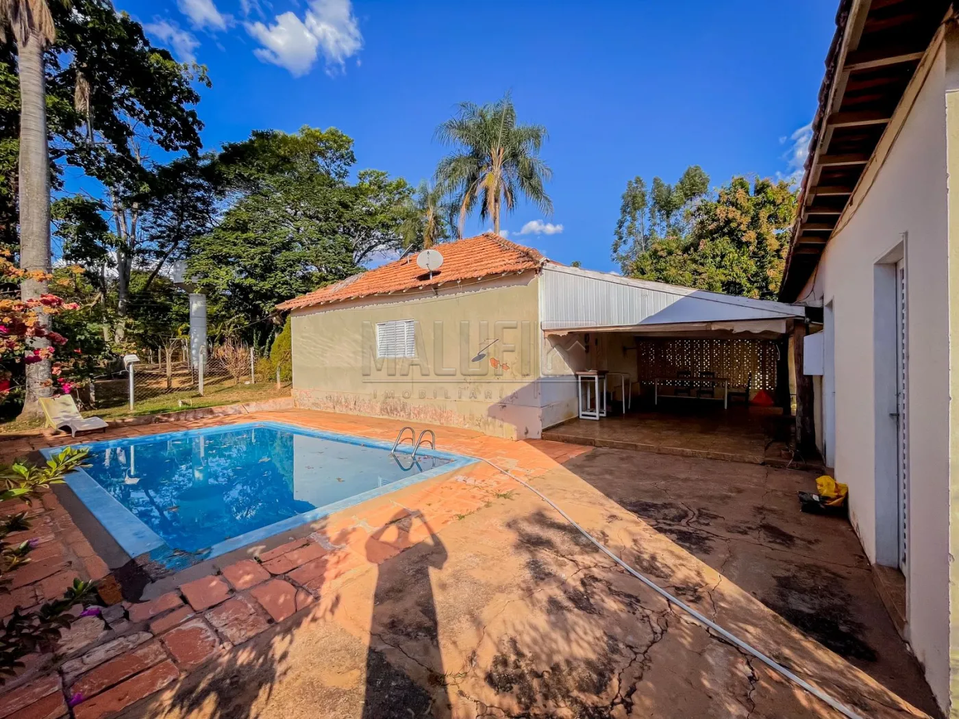 Excelente Chácara localizada próxima a região urbana da cidade de Olímpia/SP, possuindo: 02 quartos, banheiro social interno e externo, sala de tv, sala de jantar, cozinha, ampla área de lazer c/ churrasqueira e piscina, área de serviço, quarto de despejo, poço artesiano, amplo barracão com aproximadamente 100m² e diversas árvores frutíferas.